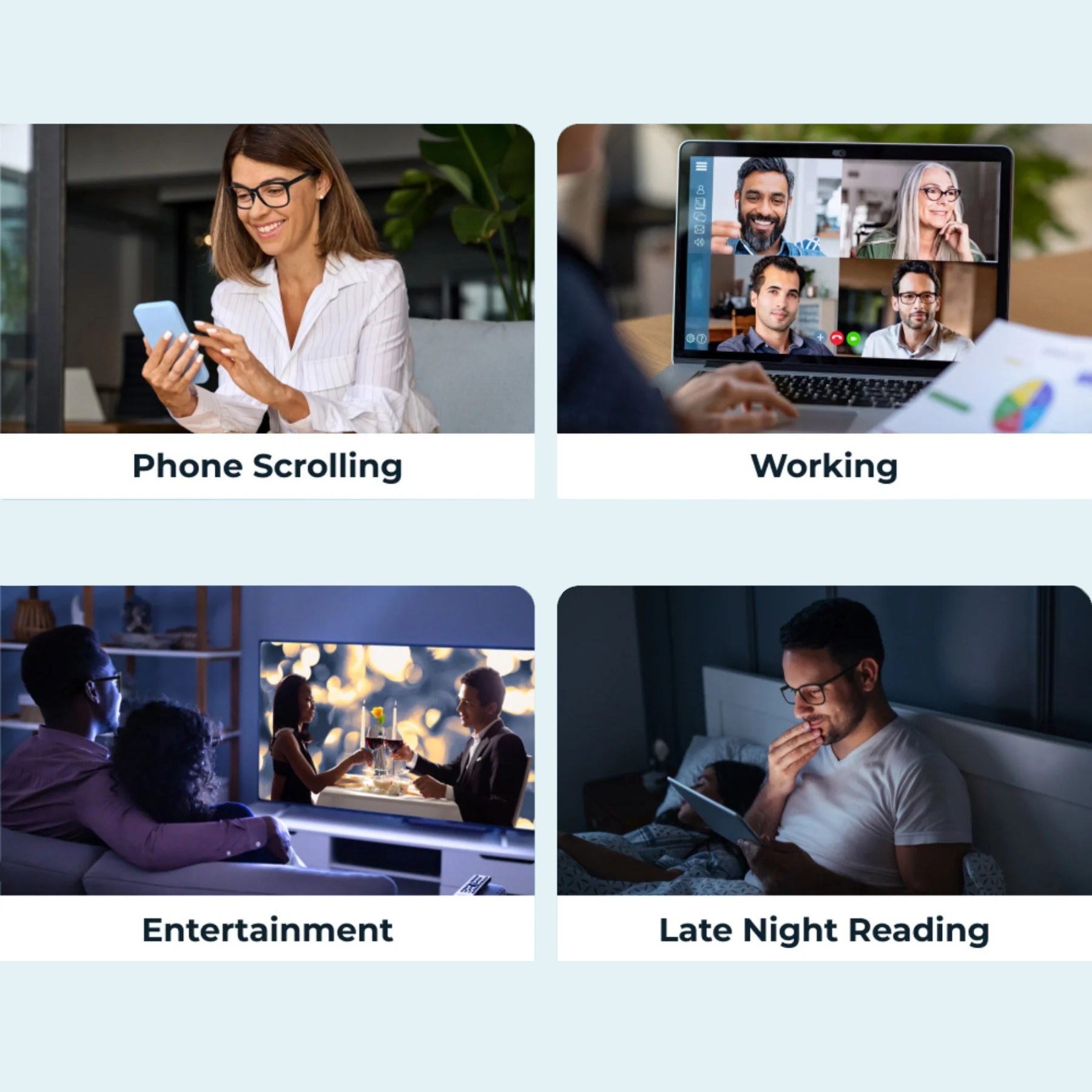 • Blocks Harmful Blue Light – Filters blue light from phones, computers, tablets, TVs, and games to reduce eye strain, dryness, and headaches.